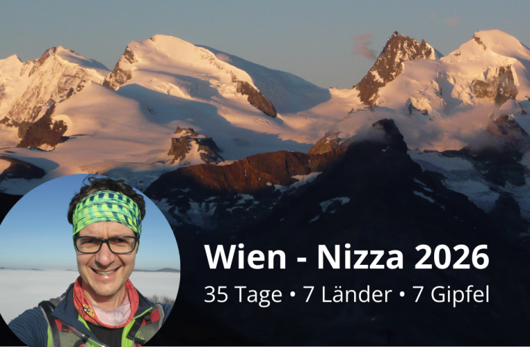 Es ist der erste durchgehend dokumentierte Versuch, die sieben höchsten Gipfel der sieben Alpenländer in einer rein fußläufigen, self-supported Durchquerung von Wien nach Nizza zu verbinden.
